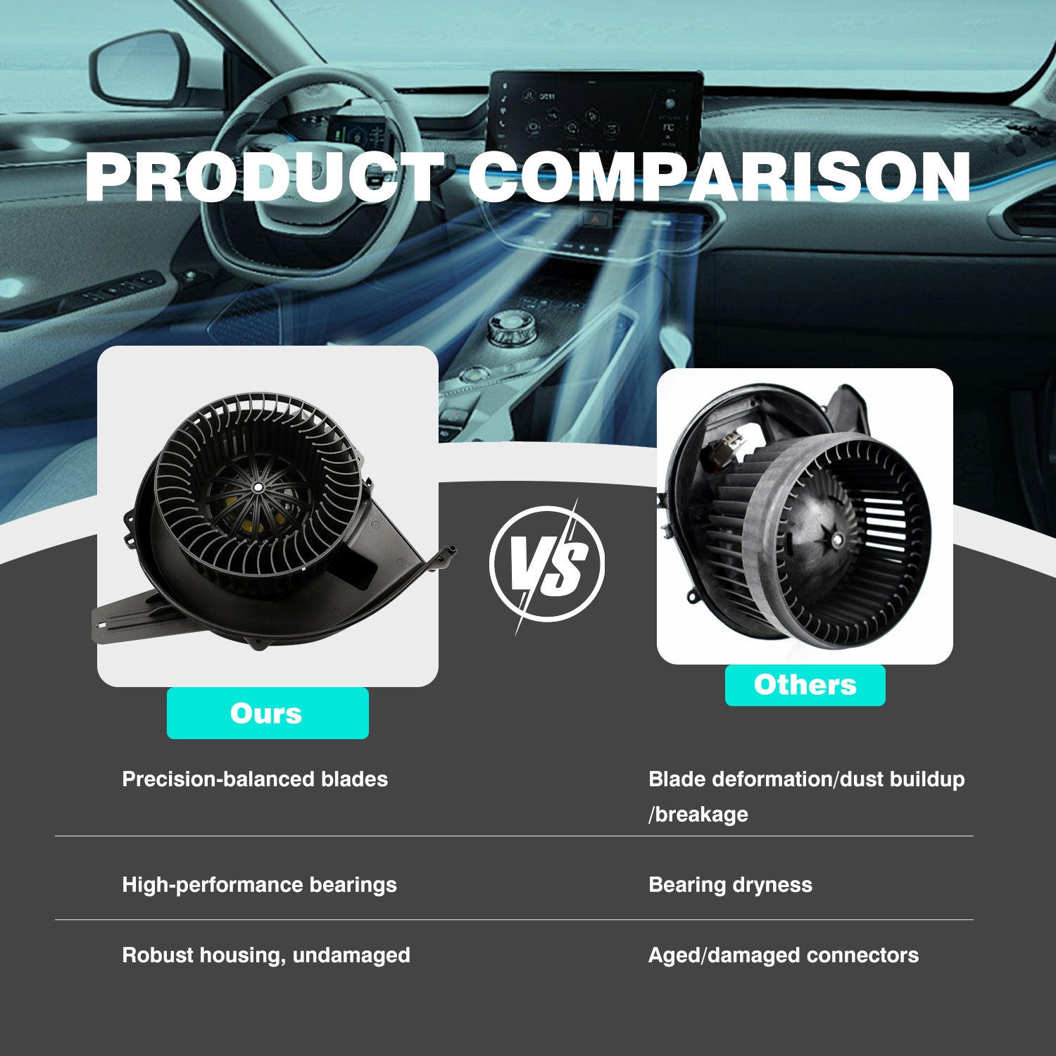 Excellent performance: The blower motor fan has a low noise design and strong power, which can quickly, quietly and efficiently adjust the temperature. Excellent heat dissipation performance allows safe operation even in high temperature environments.